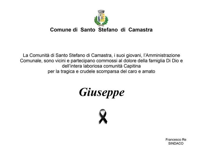 Onore a chi ogni giorno rischia e sacrifica la propria vita per rendere più sicura e più libera la vita di tutti noi. Riconoscenza ed onore all'Arma dei Carabinieri ed ai suoi tre militari caduti nell'adempimento del loro dovere. Il Sindaco Il Presidente del Consiglio Comunale l' Amministrazione Com